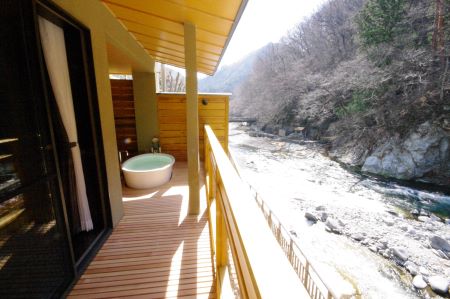 特別ルームの露天風呂からは外の景色が丸見え♡